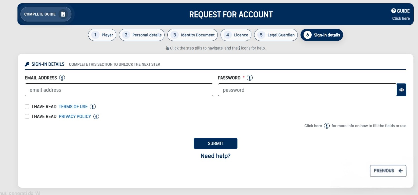 If you do not reside in the corresponding country, you must complete the online procedure with the federation.